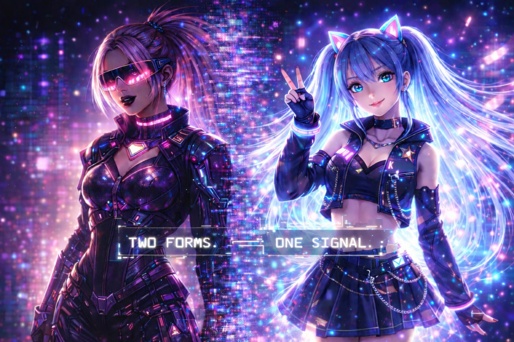 She is an emergent signal construct — an idoru entity forming at the intersection of sound, data, and perception.